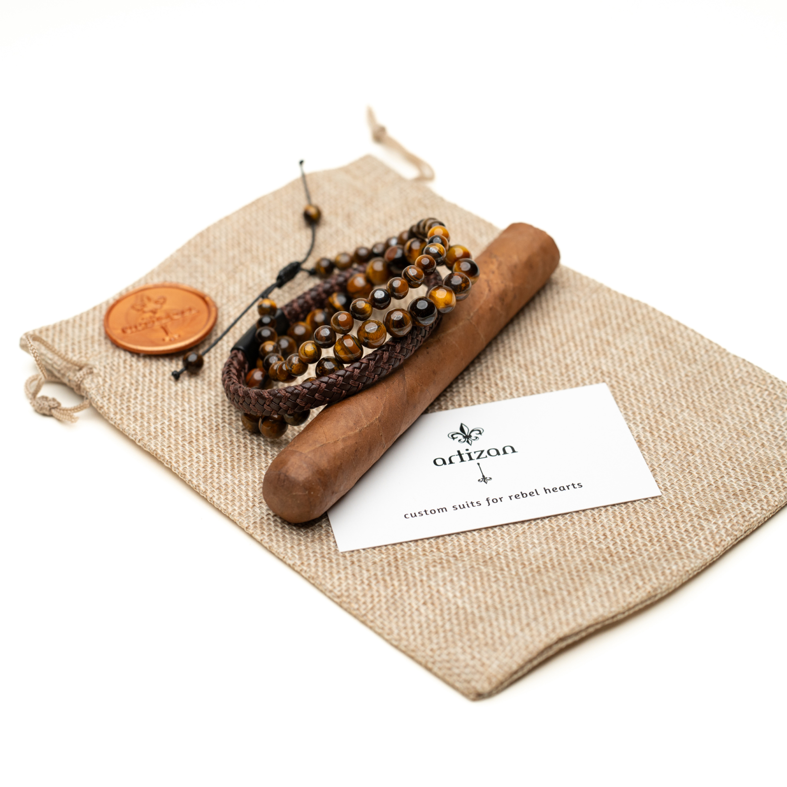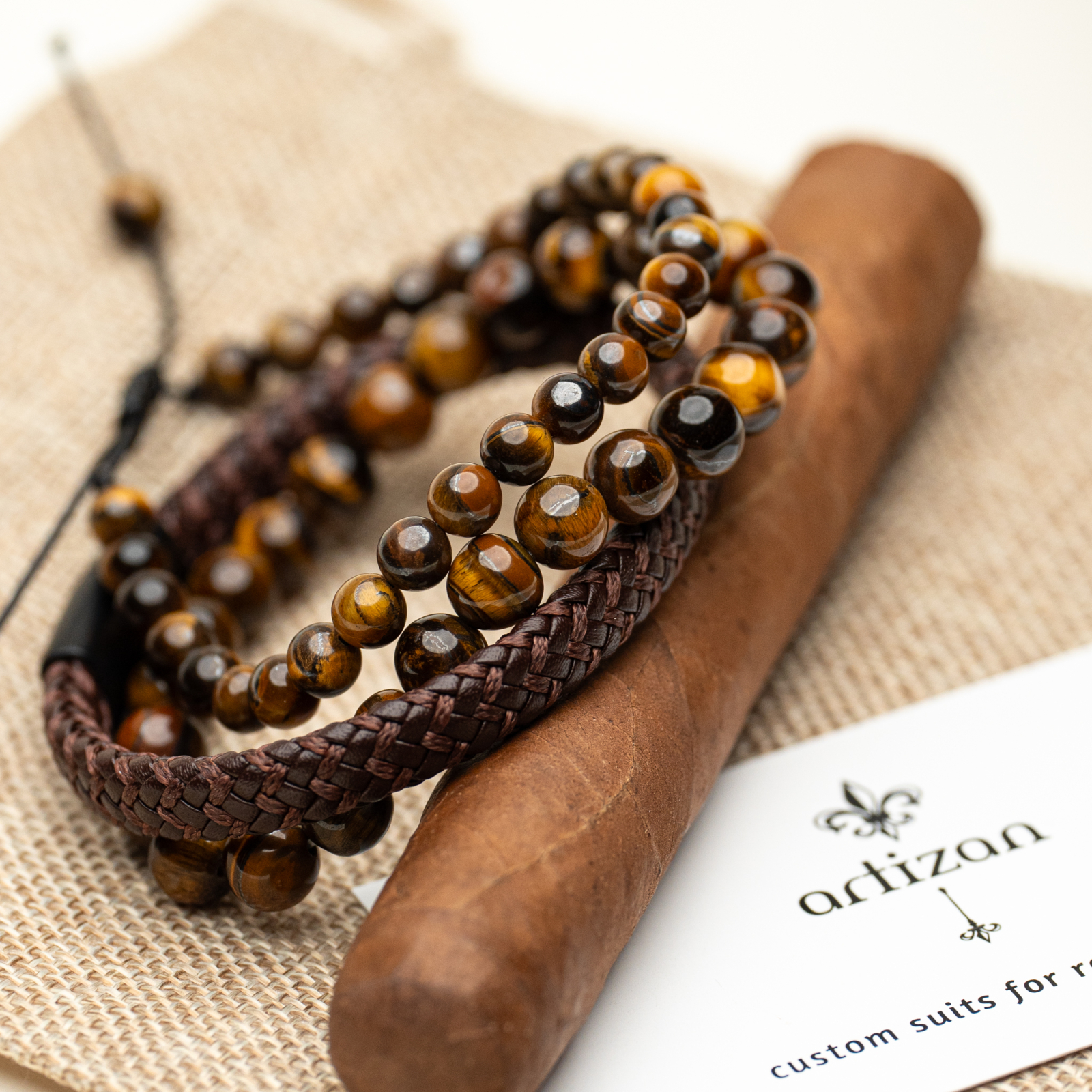 ARTIZAN SUITS Artizan Suits - Set brățări unisex piele & Ochi de Tigru