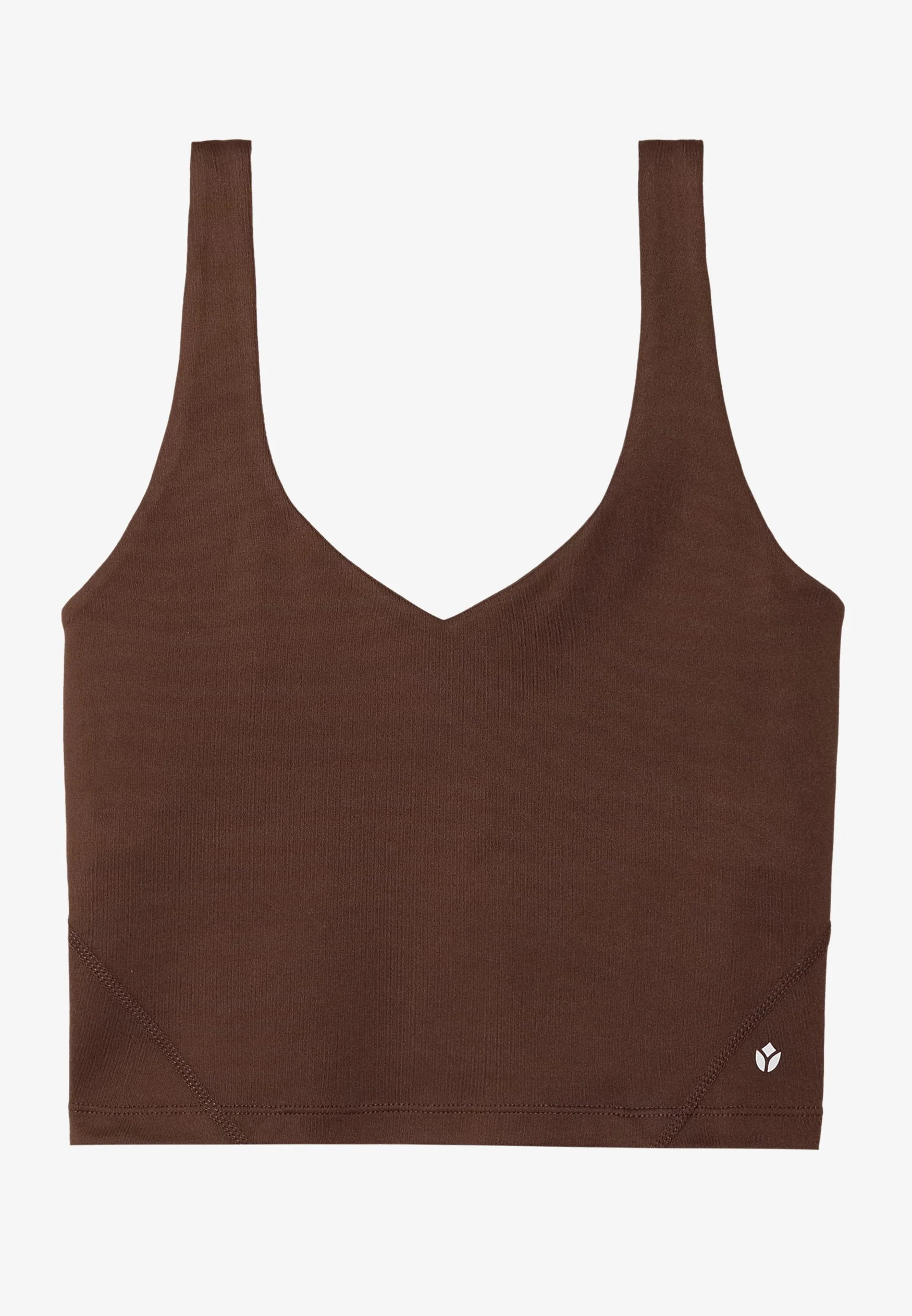 Da, are bretele late și decolteu în V pentru un aspect sport și feminin.