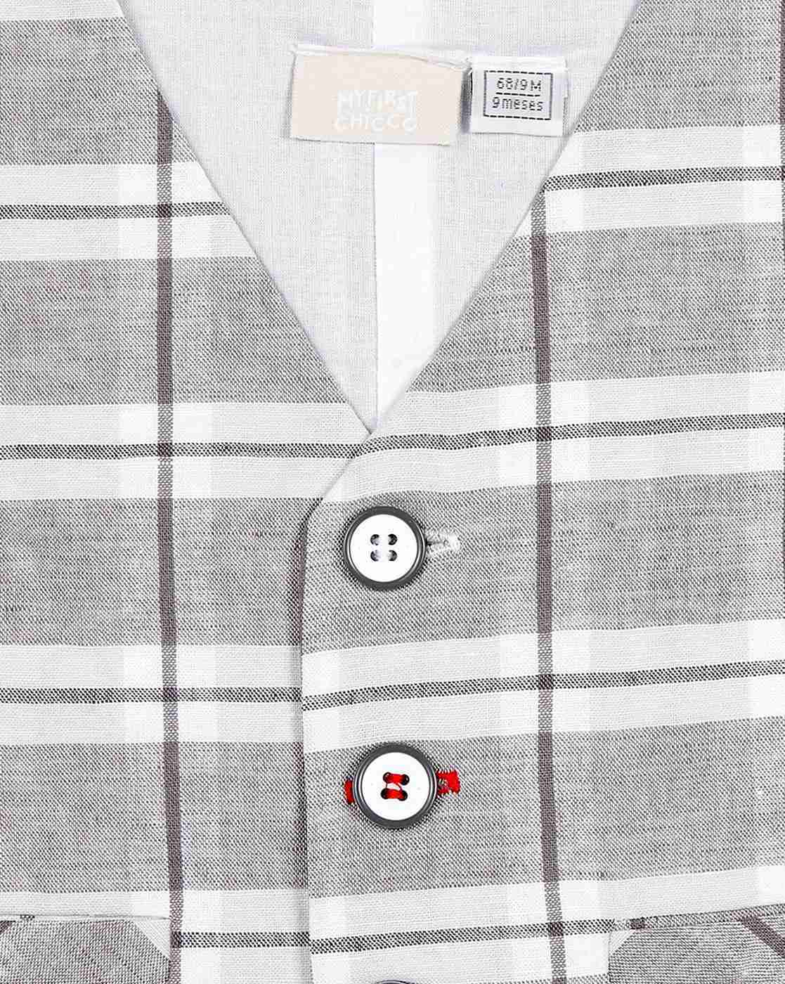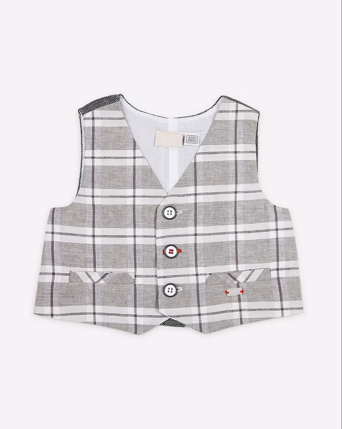 Design modern în carouri, în nuanțe de gri, ce oferă un look clasic reinterpretat pentru cei mici
