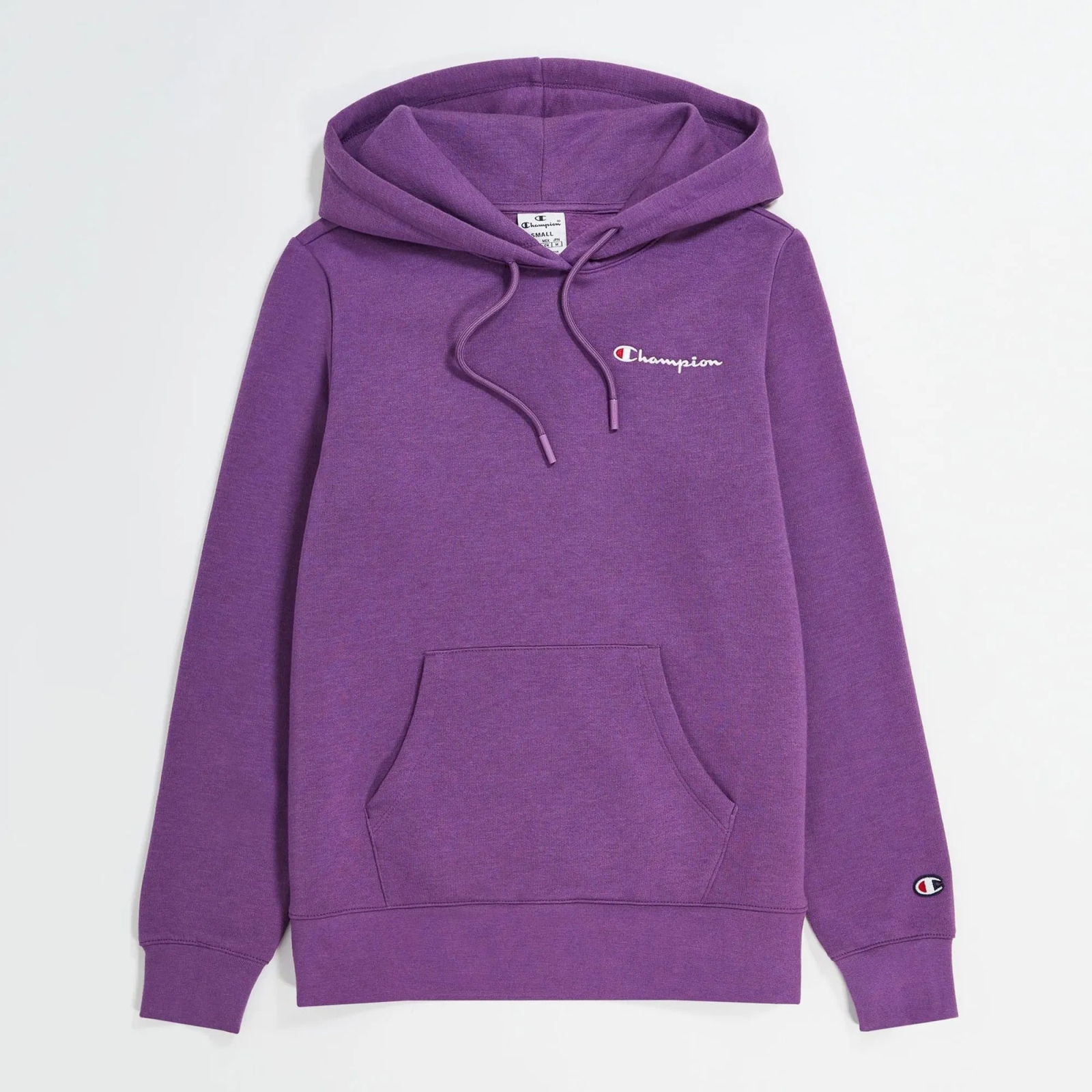 Are logo Champion brodat pe piept, emblemă pe mânecă, glugă reglabilă și buzunar tip kangaroo.
