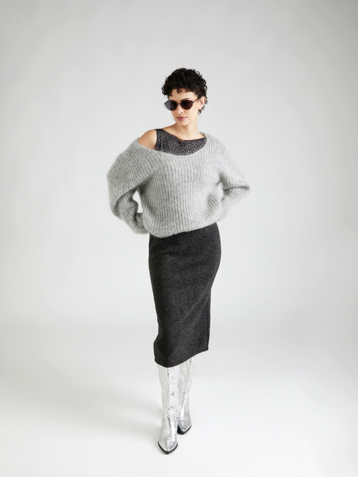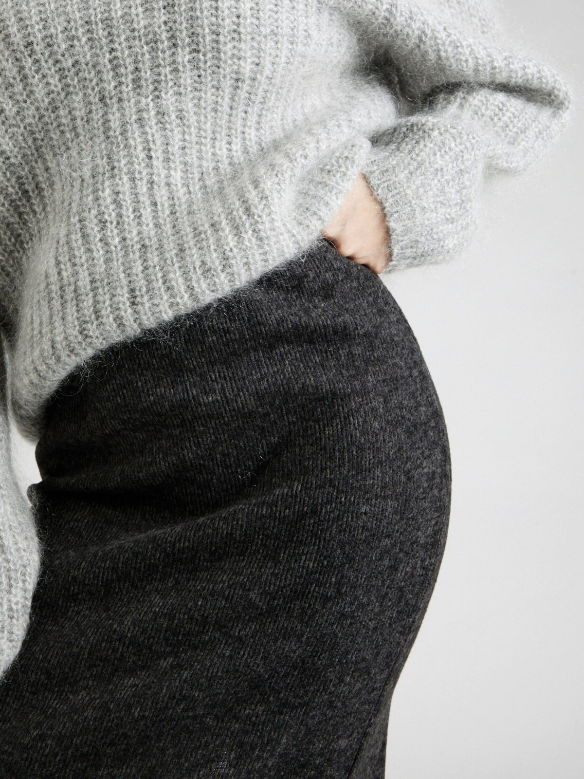 Această fustă tricotată într-o nuanță de gri închis aduce echilibrul perfect între eleganță minimală și confort modern. Poți construi în jurul ei o mulțime de ținute cool, fie că alegi un look de birou sau un outfit casual cu influențe scandi-chic.