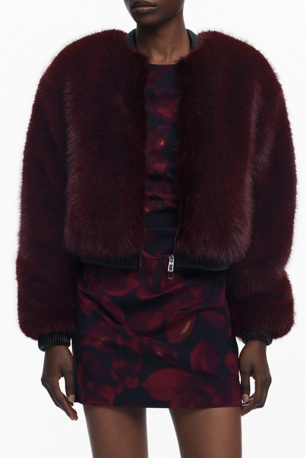 Adaugă o doză de glam în garderoba ta cu această jachetă scurtă Desigual din blană eco, piesa care transformă orice outfit într-o apariție memorabilă.