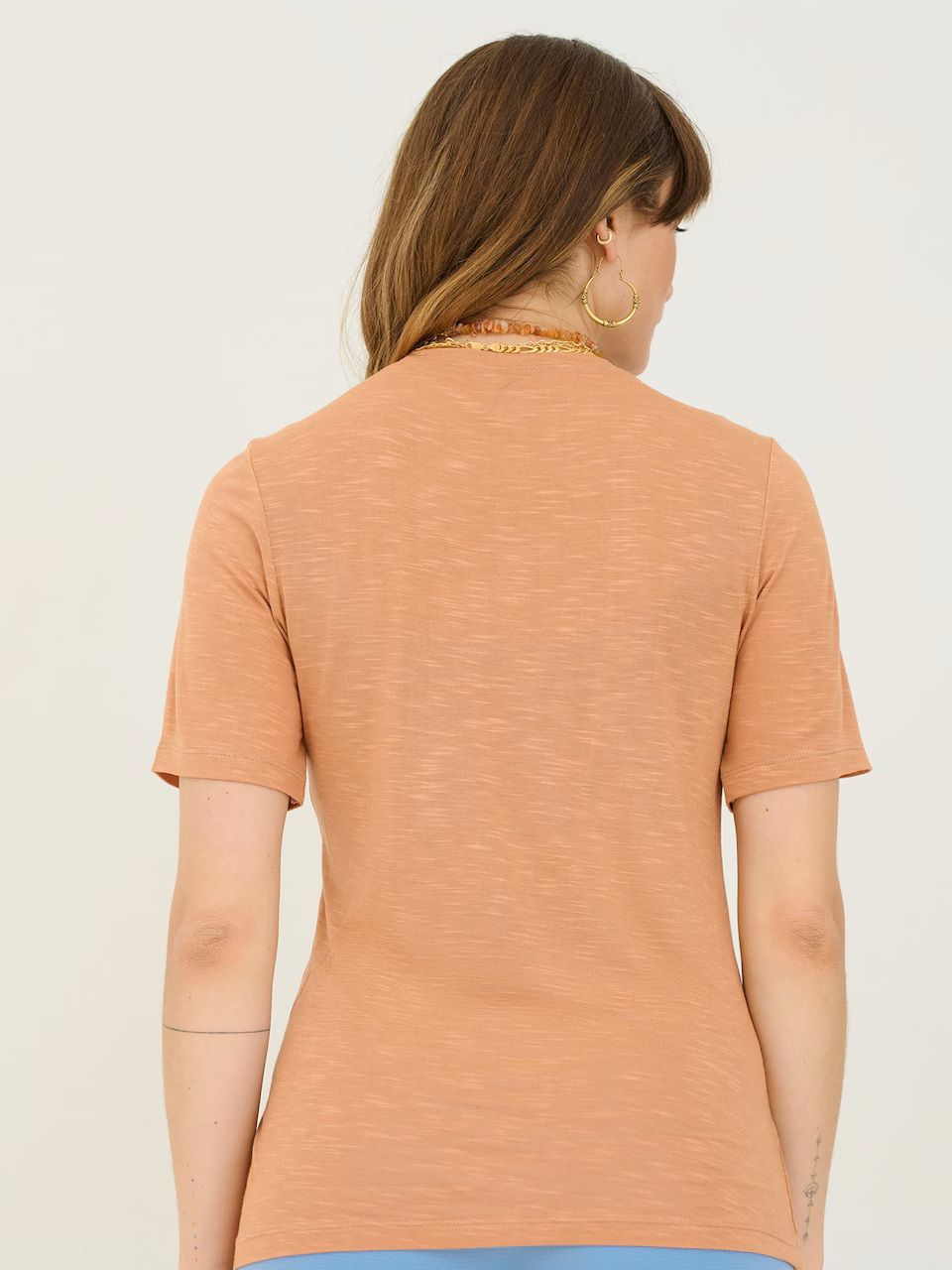 Un basic stylish, cu un vibe natural și sofisticat – tricoul camel „Lotte” din colecția About You x Sofia Tsakiridou este un must-have în garderoba de zi cu zi!